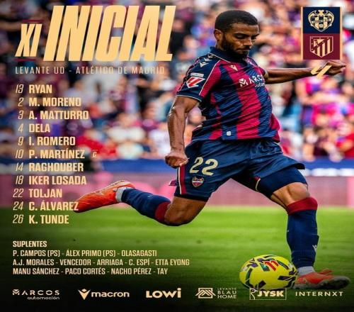 北京时间2月1日01:30,西甲 第22轮,莱万特主场迎战马德里竞技,赛前双方球队首发名单公布如下: